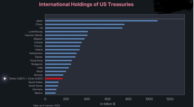Tether and Circle are already among the world’s largest holders of US Treasury assets with comparable holdings to Norway and Brazil’s government. This is a market that is growing incredibly quickly.