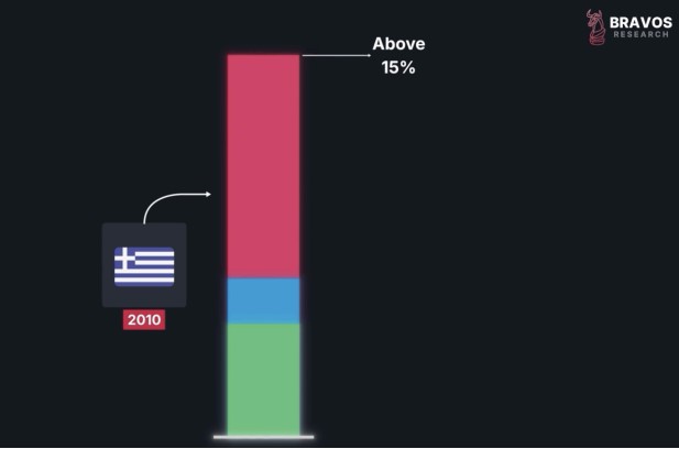 If investor confidence is low, however, you get a higher risk premium. Historically, we’ve seen it go as high as 5% in the US. This typically only happens during periods of high uncertainty, big geopolitical risks, or reckless government spending. For example, the risk premium on Greek bonds in 2010 at the heart of the European debt crisis was above 15%.